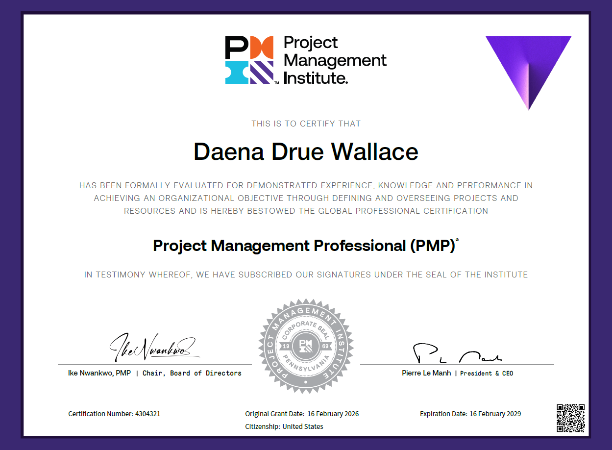 Daena Wallace is an Administrative Operations and Project Management professional who helps organizations, entrepreneurs, and mission-driven teams bring clarity, structure, and momentum to their work.